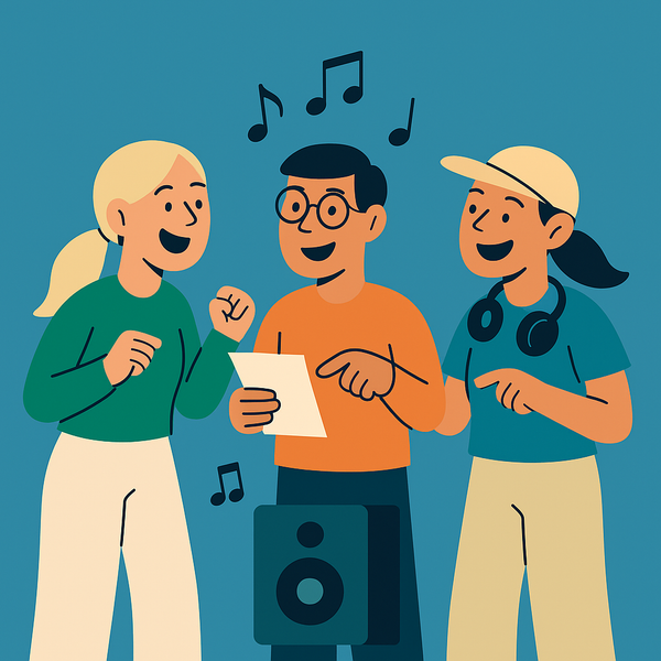 En energisk og sosial øvelse som skaper god stemning og bygger relasjoner i gruppa – gjennom musikk, humor og gjetting. Deltakerne velger hver sin sang knyttet til et felles tema, og forsøker å gjette hvem som har valgt hvilken låt.